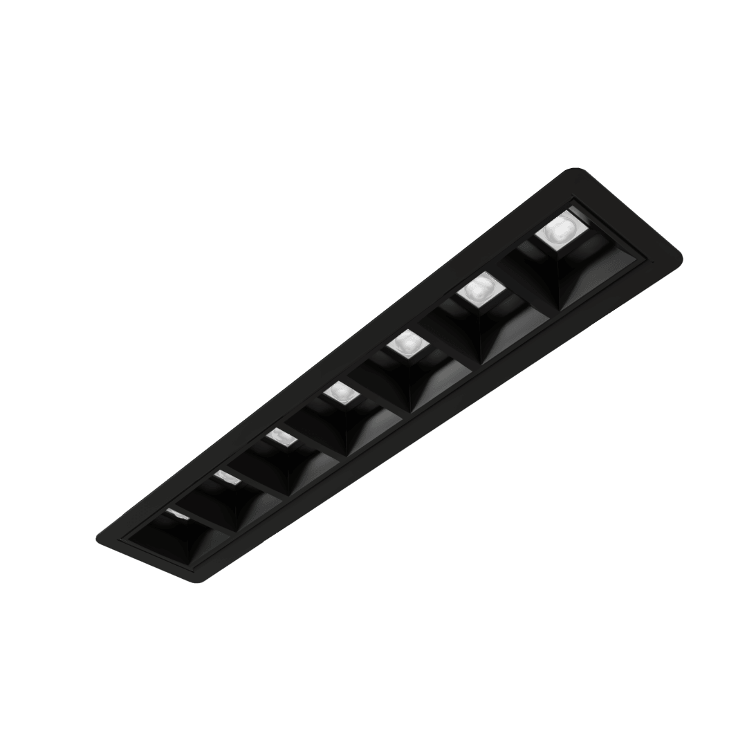 Nato per l’illuminazione ottimale delle corsie T-LIGHT è dotato di due sistemi ottici laterali regolabili, orientabili -15°/ +90°, equipaggiabili con diverse tipologie di riflettori – dark, metallizzati e bianchi, abbinati a lenti tecniche asimmetriche – grazie a cui è possibile ottenere diverse fotometrie, distribuzioni luminose, per adattarsi ad ogni contesto. Il prodotto viene installato ad una interdistanza di circa 2 metri per essere installato in store sia di piccole che di grandi dimensioni, a prescindere dalla lunghezza delle corsia. Estetica e comfort visivo: le forme miniaturizzate riducono al minimo l’impatto dei sistemi ottici, concepiti altresì per limitare l’indice di abbagliamento, nascondere la sorgente luminosa e creare al contempo il giusto accento sul prodotto esposto.