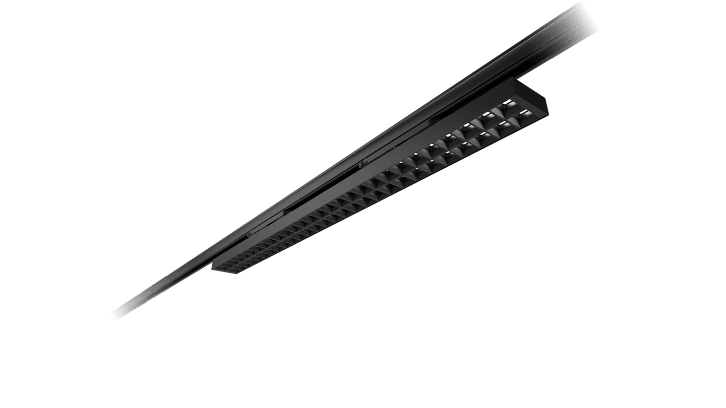 Corpo illuminante led a binario con ottica darklight. Nato per rispondere alle esigenzeper l’illuminazione degli uffici, aree casse, postazioni videoterminali. Caratterizzato daun abbagliamento ridotto per un elevato comfort visivo. Compatto e facile da montare.